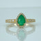 Anillo Solitario Lagrima Esmeralda y Diamantes POR FABRICACION Oro amarillo 18k / Talla 6/10 / 4,21 Gr *