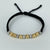 Pulsera tejida Bolas Diamantadas 11uni 6/5mm / Hilo Negro Oro amarillo y Oro blanco 18k 1,51 Gr *
