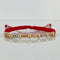 Pulsera tejida Bolas Lisas 7uni 4mm / Cilindros 8uni 3mm / Hilo Rojo Tres oros 18k 1,48 Gr *