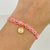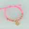 Pulsera tejida Dije Letra C / BD 8uni 5mm / Hilo Rosa Oro amarillo 18k 1,33 Gr *