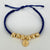 Pulsera tejida Dije Letra I / BD 6uni 7mm / Hilo Azul Oro amarillo 18k 1,71 Gr *