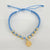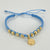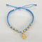 Pulsera tejida Dije Letra O / BD 8uni 5mm / Hilo Celeste Oro amarillo 18k 1,22 Gr *