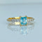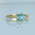 Anillo Solitario Rectangular Circones Blancos Celeste Oro amarillo 18k / Talla 6 1/2 / 2,19 Gr
