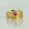 Anillo Sello Cristos Rombo Circon Fucsia Oro amarillo 18k / Talla 7 / 1,92 Gr