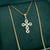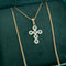 Set Cadena ● Mini China + Dije Cruz Circones Verdes Blancos Oro amarillo 18k 3,41 Gr / 1,1 mm / 45 Cm *