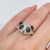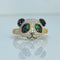 Anillo Oso Circones Blancos Negros Verdes Oro amarillo y Oro blanco 18k / Talla 7 1/4 / 4,15 Gr *
