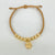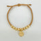 Pulsera tejida Dije Letra W / BD 8uni 5mm / Hilo Beige Oro amarillo 18k 1,24 Gr *