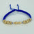Pulsera tejida Herraje Ojos Santa Lucia / BL 8uni 5mm / Hilo Azul Oro amarillo 18k 1,16 Gr *